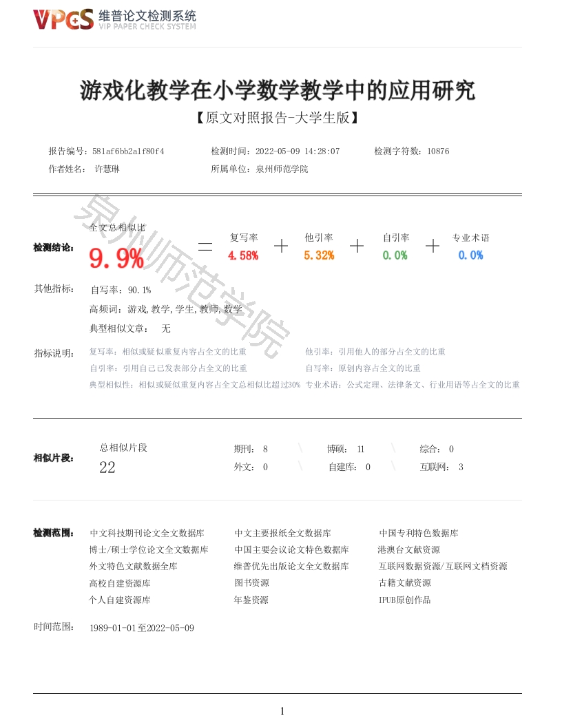 首页毕业论文范文模板游戏化教学在小学数学教学中的应用研究_原文对照报告