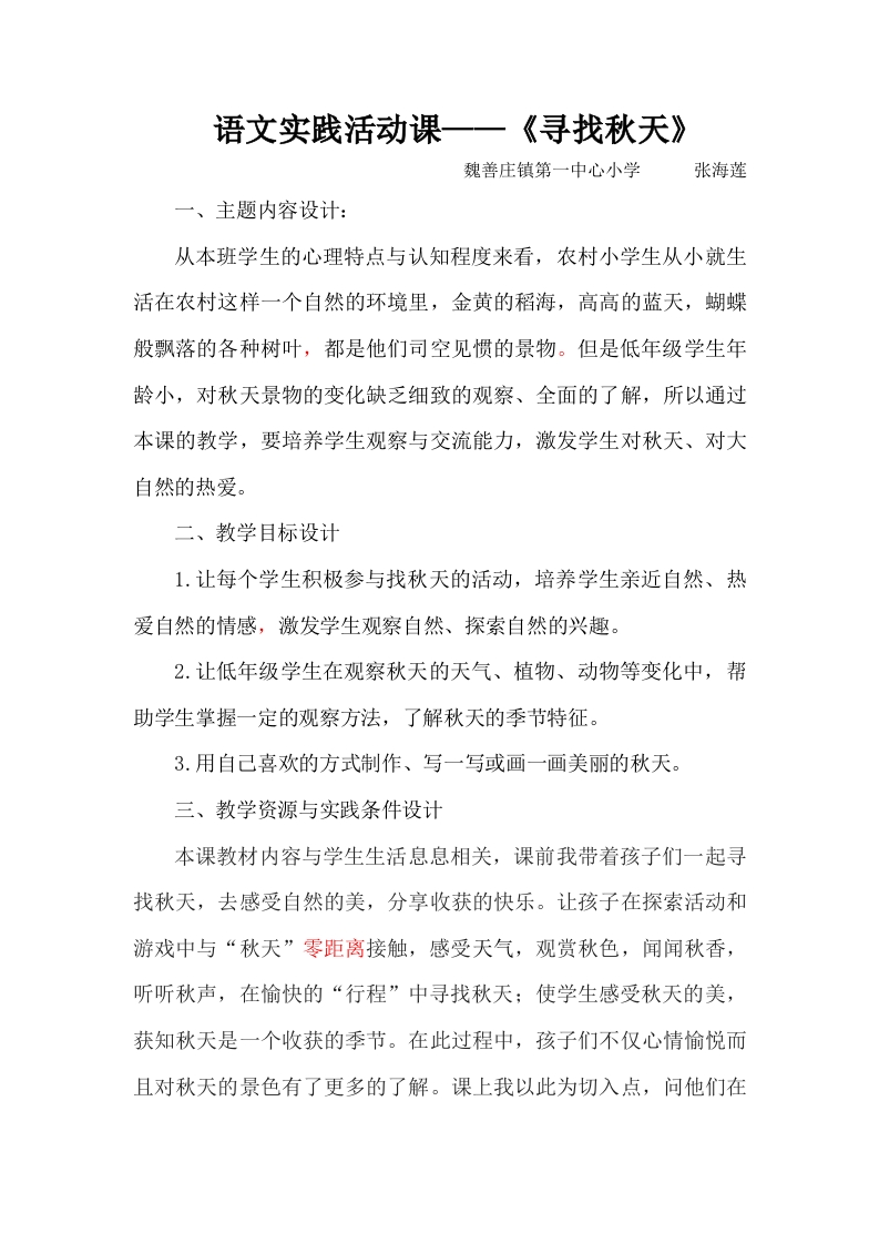 首页毕业论文范文模板语文实践活动课——《寻找秋天》