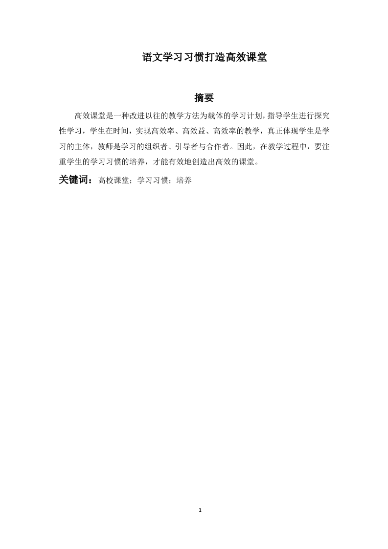 首页毕业论文范文模板语文学习习惯打造高效课堂