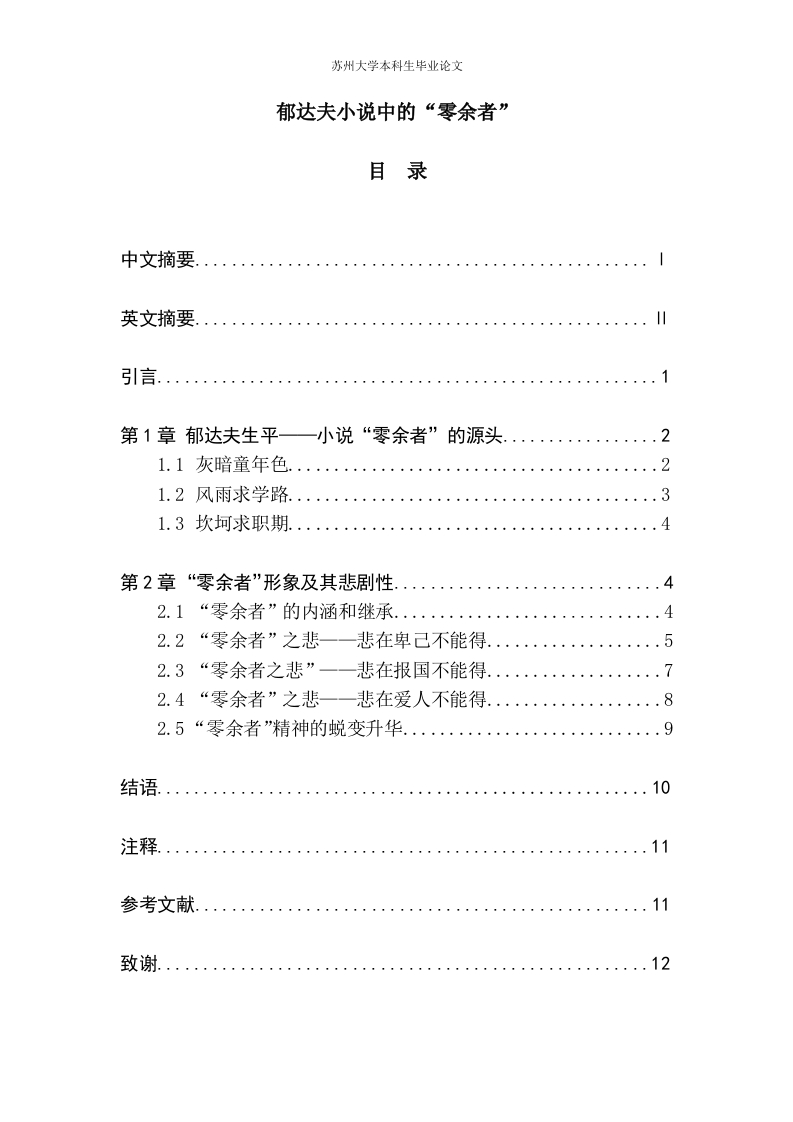 首页毕业论文范文模板郁达夫小说中的“零余者”