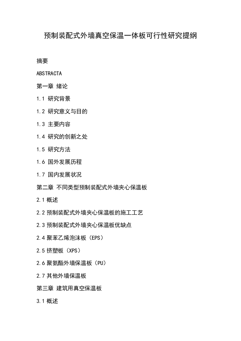 首页毕业论文范文模板预制装配式外墙真空保温一体板可行性研究提纲