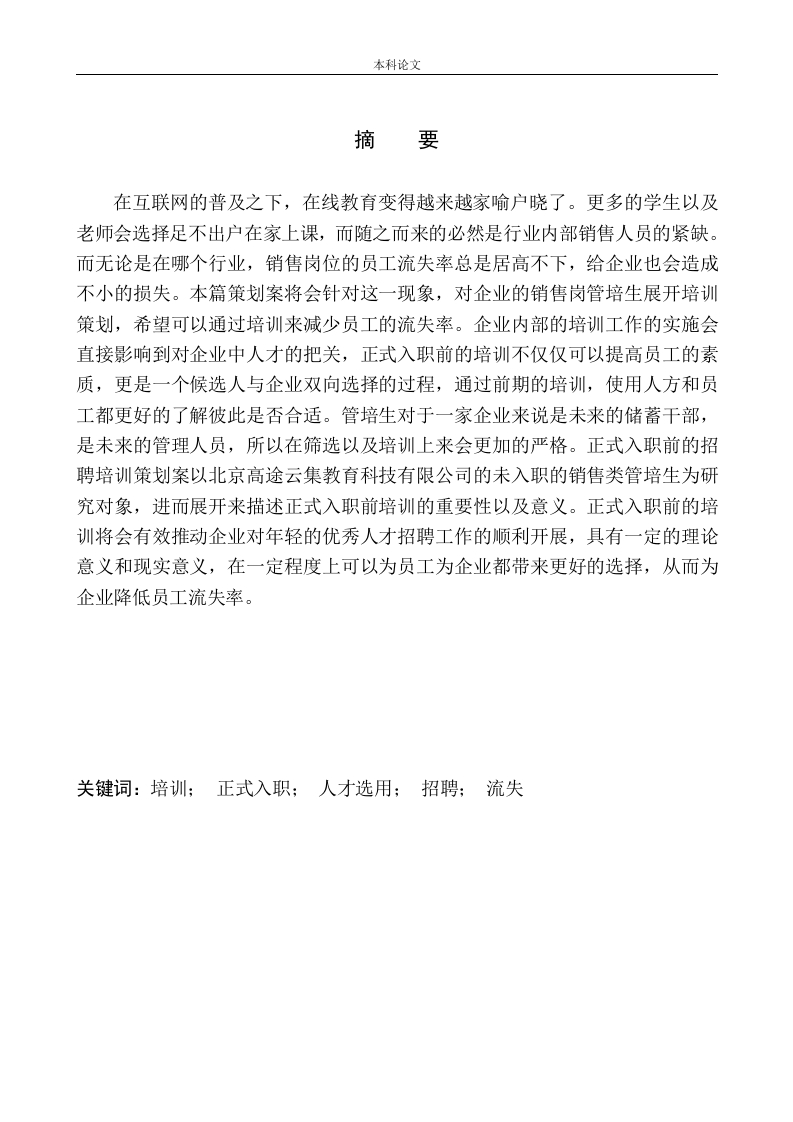 首页毕业论文范文模板161124235-王巧-北京高途云集教育科技有限公司管培生培训策划案