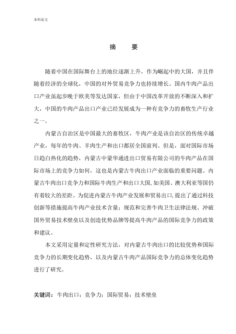 161232201-莎茹拉-内蒙古中蒙华通进出口贸易有限公司牛肉产品出口竞争力分析