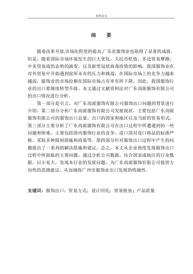 161232204-杨洋-广东尚派服饰有限公司服饰出口问题研究