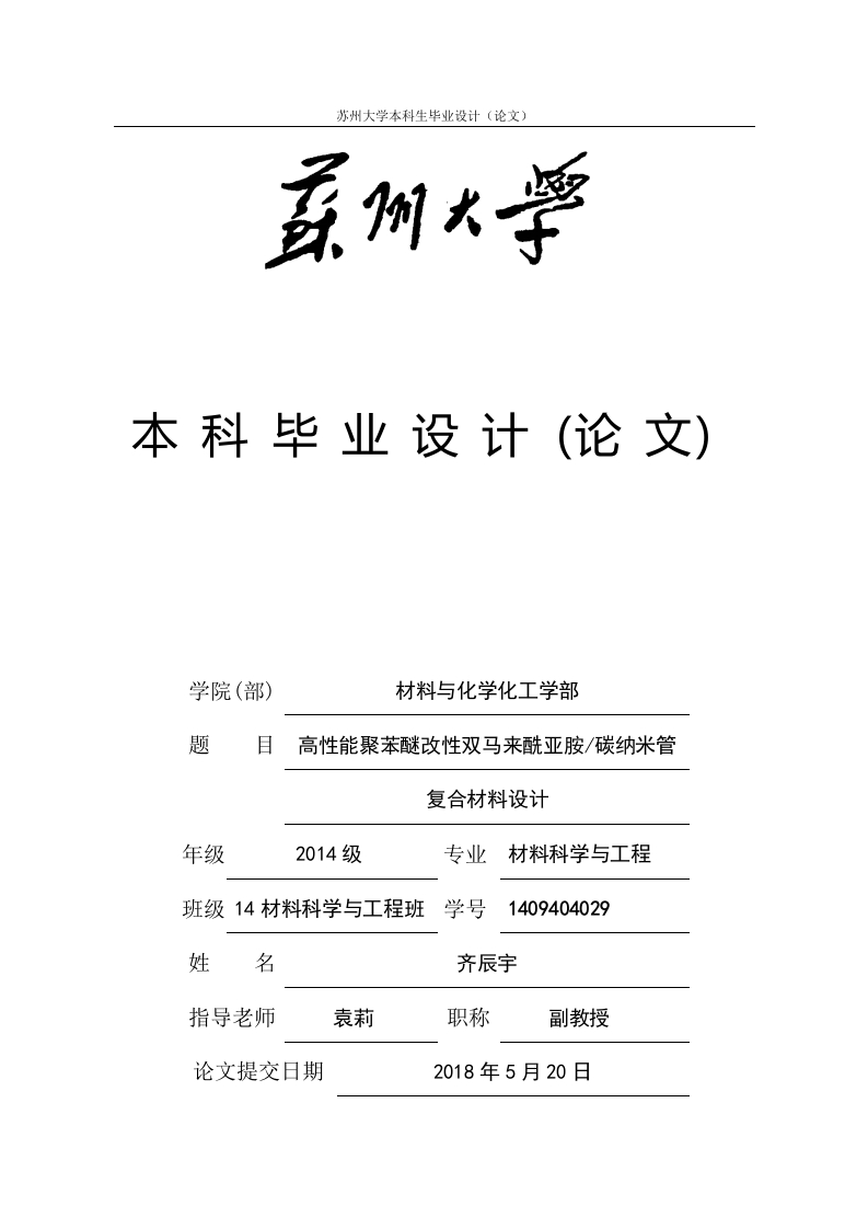 首页毕业论文范文模板高性能聚苯醚改性双马来酰亚胺碳纳米管 复合材料设计